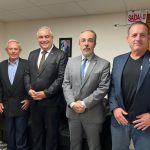 O presidente da ACORS, Coronel QORR PMSC Sérgio Luís Sell, e o 1º vice-presidente, Coronel QORR PMSC Leibnitz Martinez Hipolito, estiveram reunidos na tarde desta quarta-feira com o presidente da Federação das Associações Empresariais